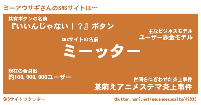 | 胡散臭い通販商品みたいなあだ名 | 『億万長者になれる霊験あらたかなお札…その名も「ミーアウサギ」』 |