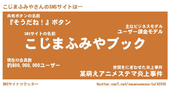 | 女子向けラノベタイトル風あだ名 | 『誰かこのこじまふみやを説明してください! ~契約から始まるウェディング~』 |