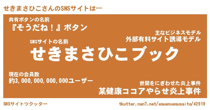 | 肩書あだ名 | 『せきまさひこCEO』『せきまさひこ団長』 |