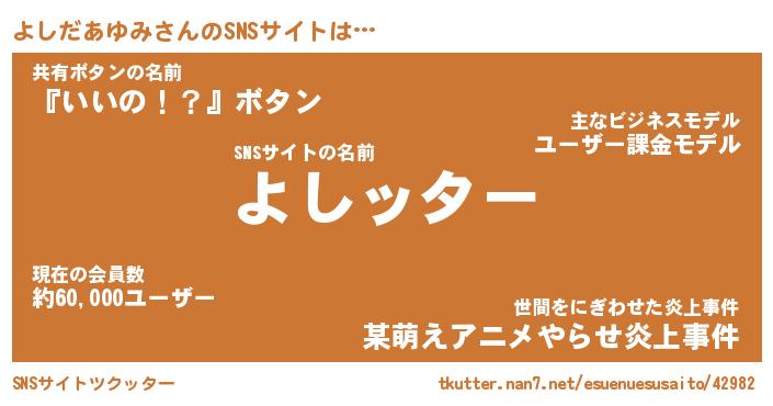 | 肩書あだ名 | 『よしだあゆみCEO』『よしだあゆみ大統領』 |