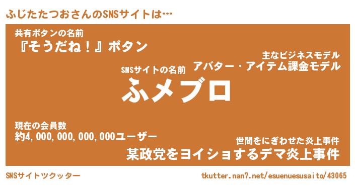| 肩書あだ名 | 『ふじたたつお社長』『ふじたたつお教頭』 |