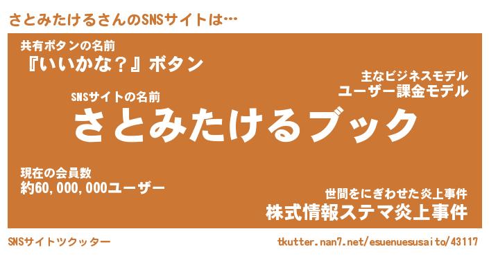 | 肩書あだ名 | 『さとみたける店長』『さとみたける班長』 |
