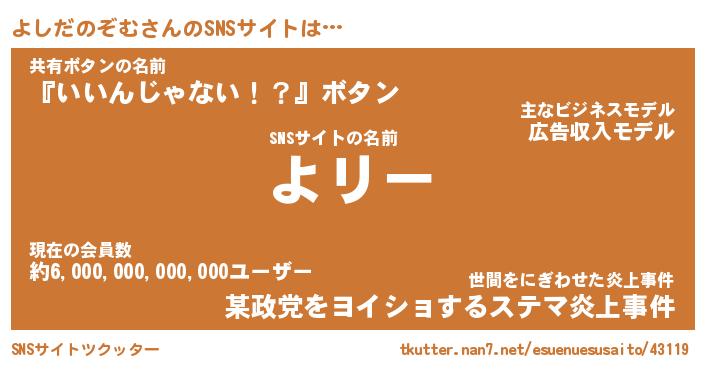 | 肩書あだ名 | 『よしだのぞむCEO』『よしだのぞむ班長』 |