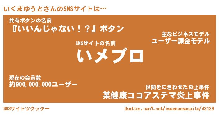 | 肩書あだ名 | 『いくまゆうと店長』『いくまゆうと団長』 |