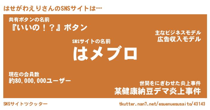 | 男性向けラノベタイトル風あだ名 | 『ハセガワエリアートオンライン』 |