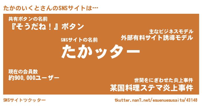 | 肩書あだ名 | 『たかのいくとCEO』『たかのいくと大統領』 |
