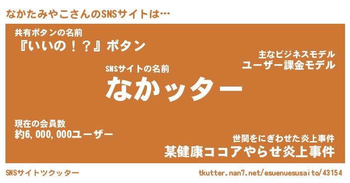 | 肩書あだ名 | 『なかたみやこCEO』『なかたみやこ大統領』 |