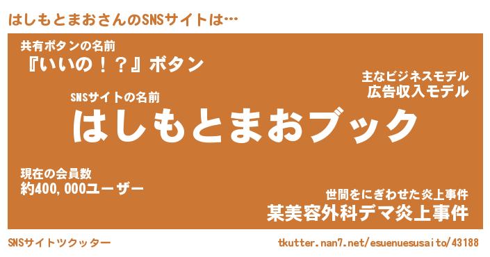 | 肩書あだ名 | 『はしもとまお御曹司』 |