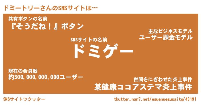| 胡散臭い通販商品みたいなあだ名 | 『必ず成功するブレスレット…その名も「ドミートリー」』 |