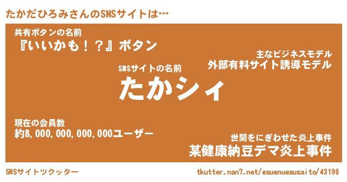 | ツイッター | たかだひろみさんのツイッターID『konnyaku_kun』 |