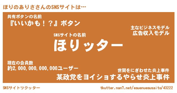 | ヘコむあだ名 | 『ほりにゅー』『酢こんぶ』 |