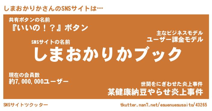| 肩書あだ名 | 『しまおかりかCEO』『しまおかりか班長』 |