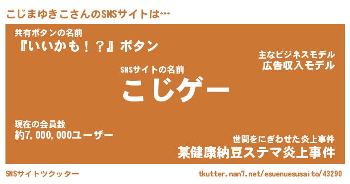 | ヘコむあだ名 | 『こじにー』『豆乳』『こじ太郎』 |