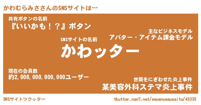 | 男性向けラノベタイトル風あだ名 | 『カワムラミサアートオンライン』 |