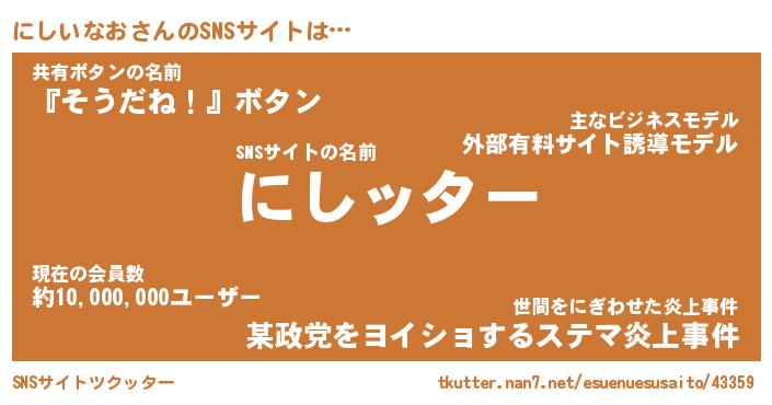 | 胡散臭い通販商品みたいなあだ名 | 『億万長者になれる水晶球…その名も「にしいなお」』 |