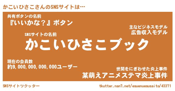 | 欧米人風あだ名 | 『マイケルかこいひさこ』 |