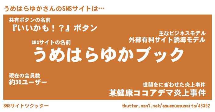 | 伝説のあだ名 | 『封印されし竜騎士うめはらゆか』 |