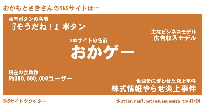 | 男性向けラノベタイトル風あだ名 | 『おかもとさきの憂鬱』 |