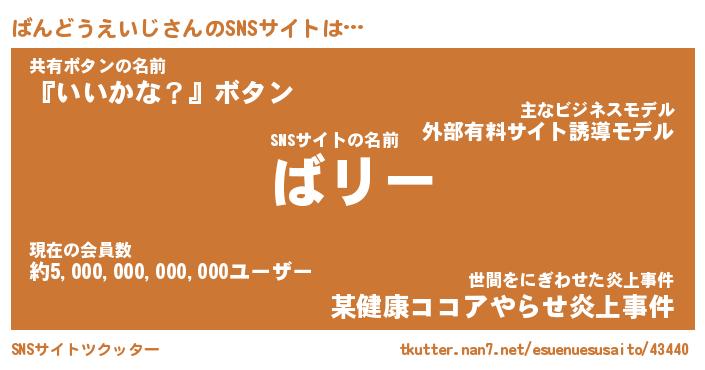 | 肩書あだ名 | 『ばんどうえいじ店長』 |