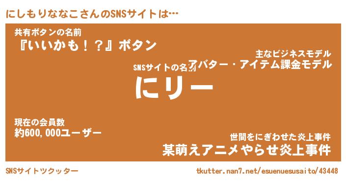 | 肩書あだ名 | 『にしもりななこ社長令嬢』 |