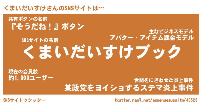 | 男性向けラノベタイトル風あだ名 | 『クマイダイスケアートオンライン』 |