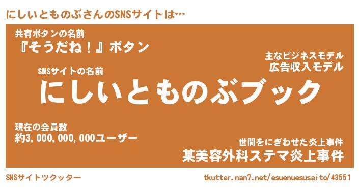 | 肩書あだ名 | 『にしいとものぶ御曹司』 |