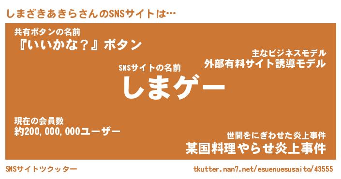 | 肩書あだ名 | 『しまざきあきら店長』 |