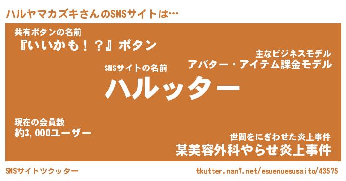 | 男性向けラノベタイトル風あだ名 | 『ハルヤマカズキアートオンライン』 |