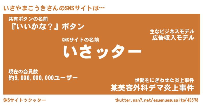 | 肩書あだ名 | 『いさやまこうき店長』 |
