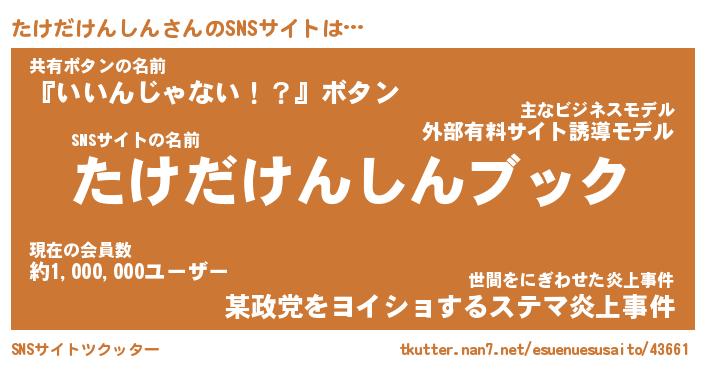 | 肩書あだ名 | 『たけだけんしんCEO』 |