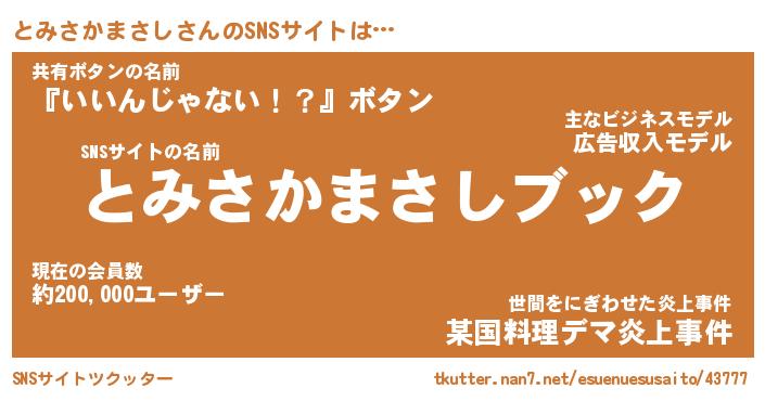 | 女子向けラノベタイトル風あだ名 | 『誰かこのとみさかまさしを説明してください! ~契約から始まるウェディング~』 |