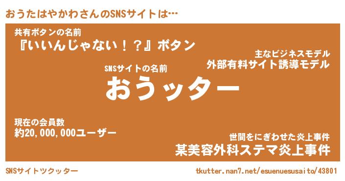 | 胡散臭い通販商品みたいなあだ名 | 『億万長者になれるブレスレット…その名も「おうたはやかわ」』 |