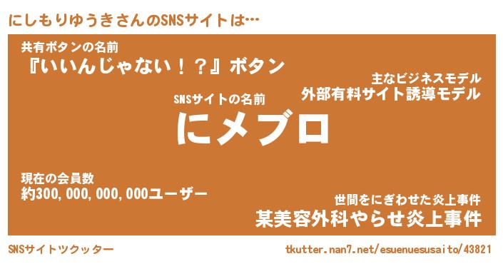 | 肩書あだ名 | 『にしもりゆうき御曹司』 |