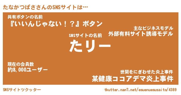 | ヘコむあだ名 | 『たなっふぃ~』『つくし』 |