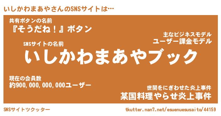 | 胡散臭い通販商品みたいなあだ名 | 『億万長者になれる霊験あらたかなお札…その名も「いしかわまあや」』 |