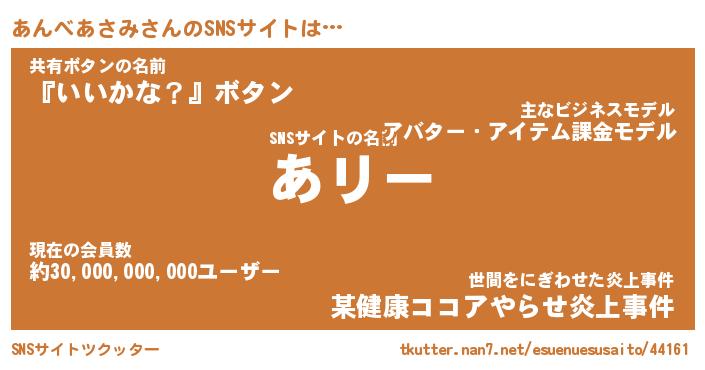 | 肩書あだ名 | 『あんべあさみ御曹司』 |