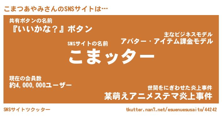 | 肩書あだ名 | 『こまつあやみCEO』『こまつあやみ団長』 |