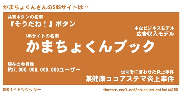 | 胡散臭い通販商品みたいなあだ名 | 『億万長者になれるブレスレット…その名も「かまちょくん」』 |