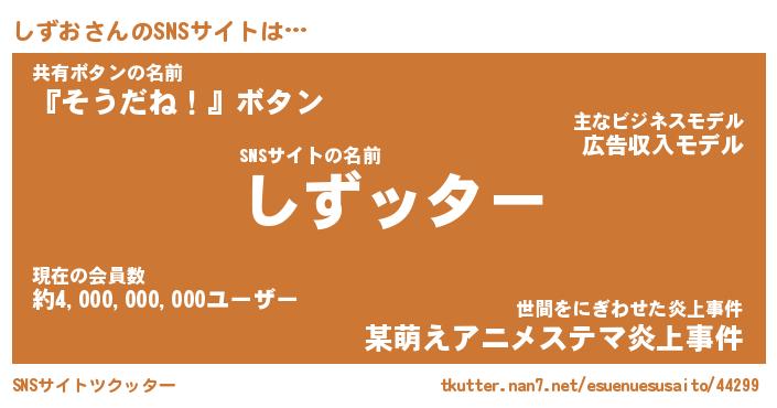 | 男性向けラノベタイトル風あだ名 | 『シズオアートオンライン』 |
