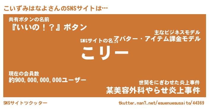 | 男性向けラノベタイトル風あだ名 | 『こいずみはなよの憂鬱』 |