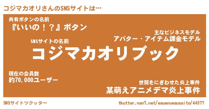 | 男性向けラノベタイトル風あだ名 | 『コジマカオリアートオンライン』 |