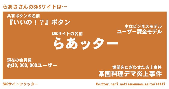 | 肩書あだ名 | 『らあさ御曹司』『らあさ国家主席』 |