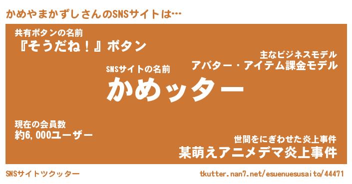 | 女子向けラノベタイトル風あだ名 | 『誰かこのかめやまかずしを説明してください! ~契約から始まるウェディング~』 |