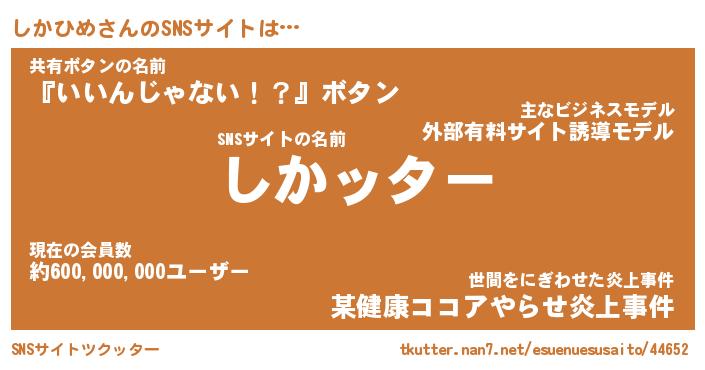| 意味不明あだ名 | 『ペロリンしかひめ』『永久保存しかひめ』 |