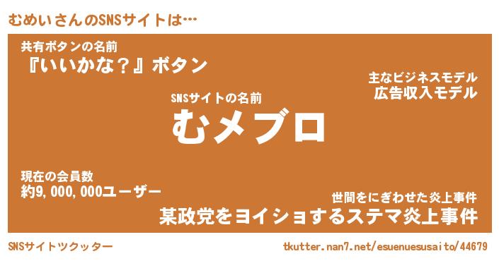 | 意味不明あだ名 | 『ペロリンむめい』『むめいフォーエバー』 |