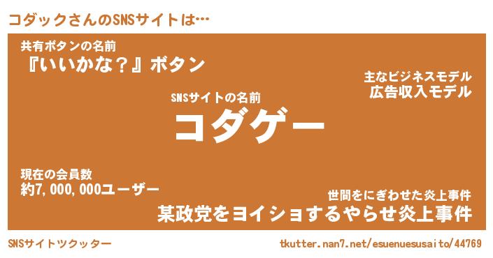 | ファンタジー風あだ名 | 『コダフェル』『エターナルコダックー』 |