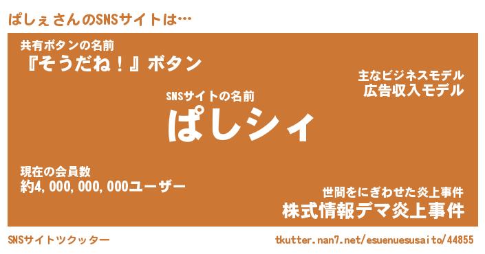 | 男性向けラノベタイトル風あだ名 | 『ぱしぇの憂鬱』 |