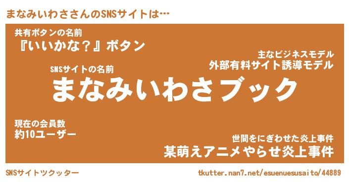 | 肩書あだ名 | 『まなみいわさ店長』『まなみいわさ班長』 |