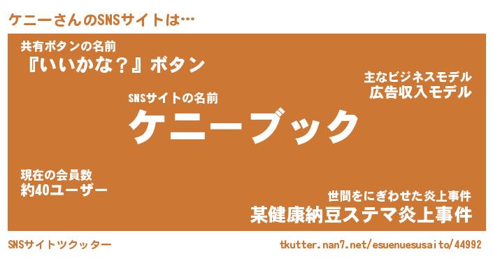 | ポケモン風あだ名 | 『ケニチュウ』『ケニーダネ』 |