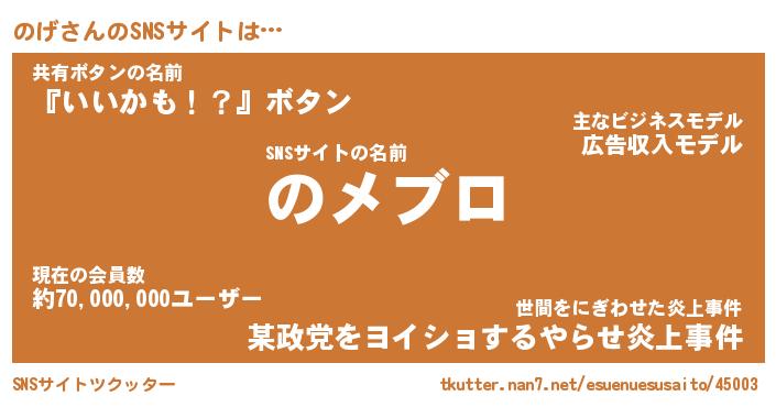 | ヘコむあだ名 | 『のげもー』『酢こんぶ』『のげを』 |